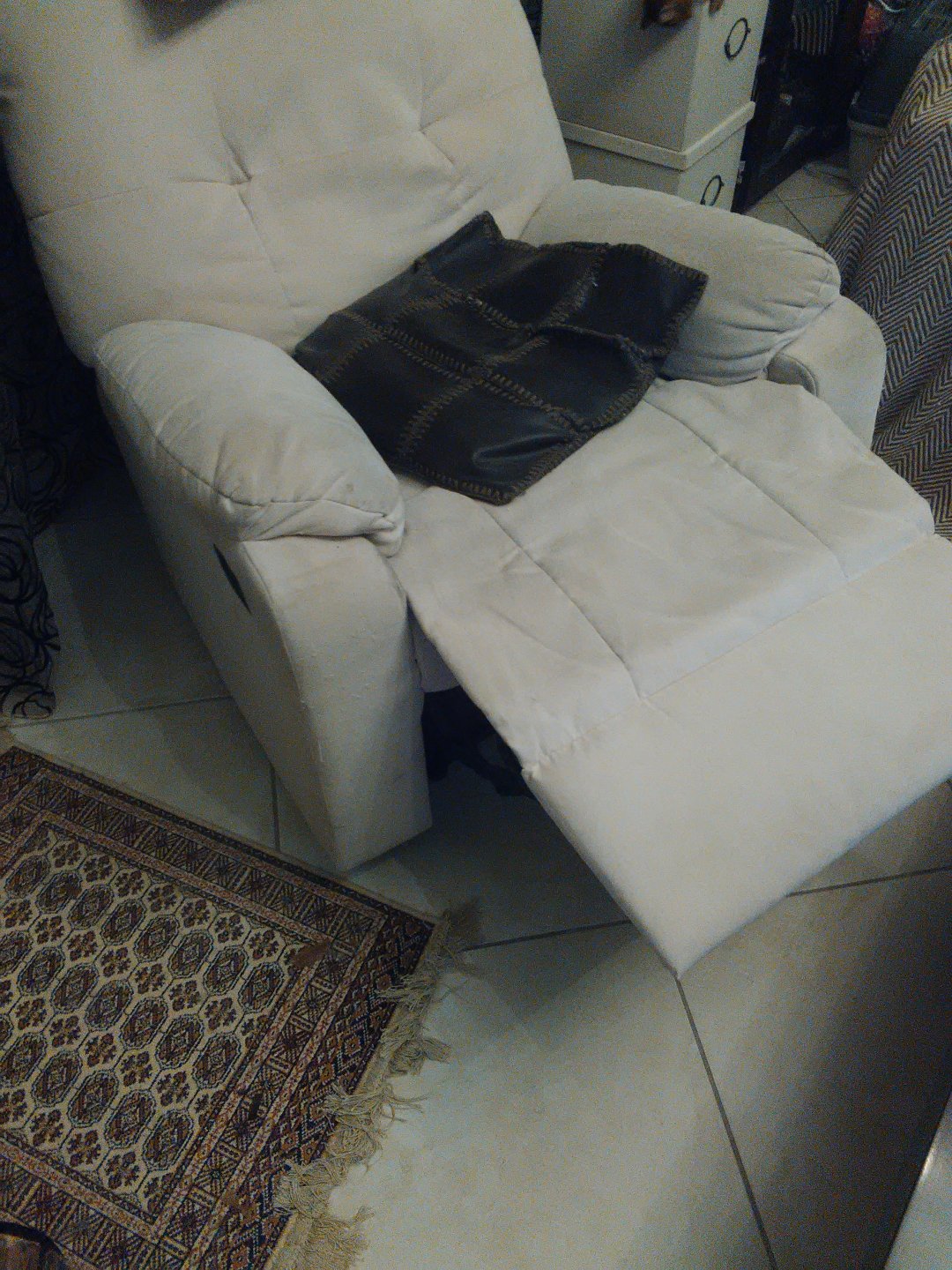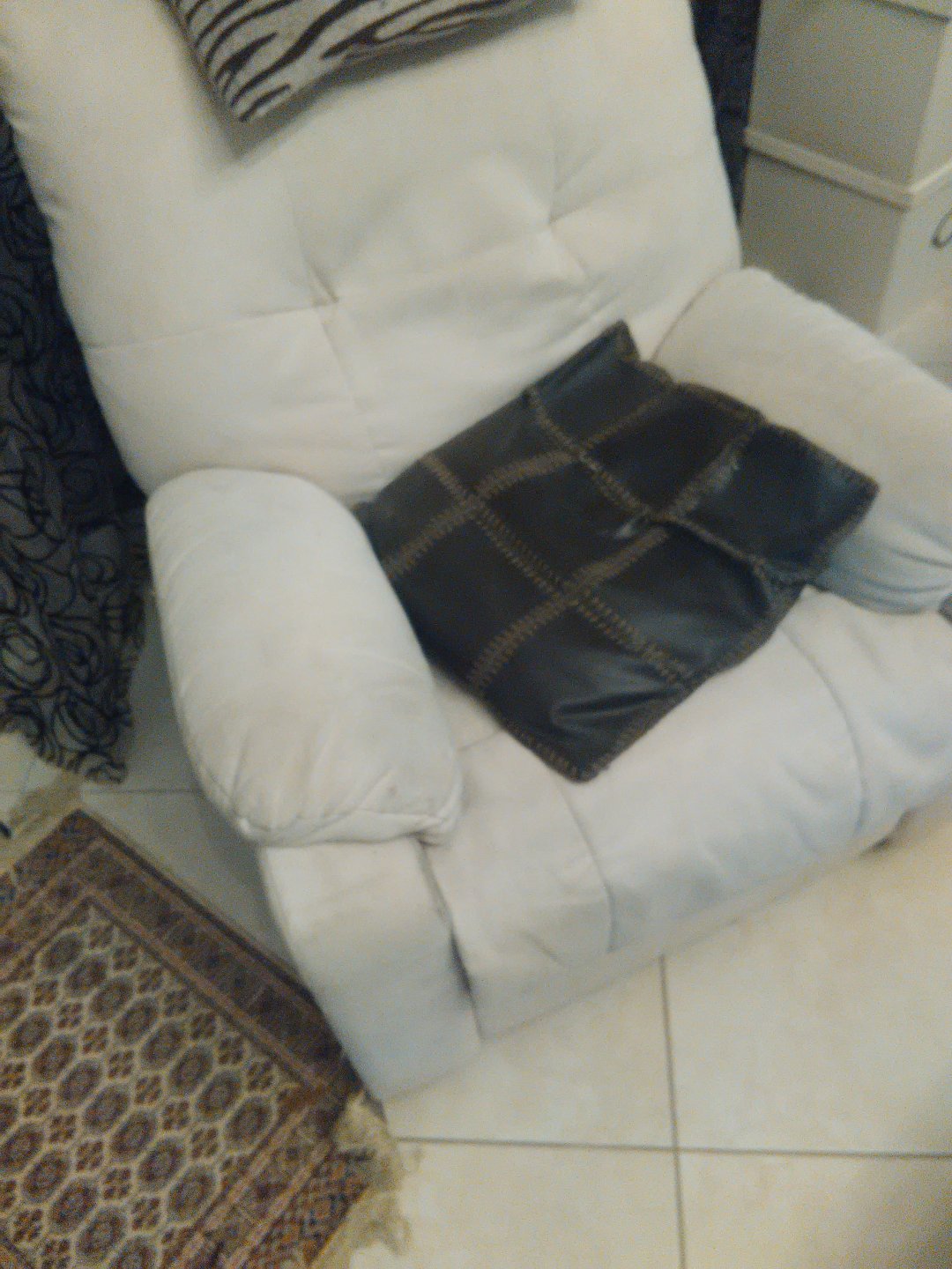 Σε αριστη κατασταση ζητημα να εχει καθησει καποιος 4-5 ωρες. Υφασμα σε απομιμηση σουεντ με μηχανισμο ανακλισης. Πωλειται 130 ευρω.