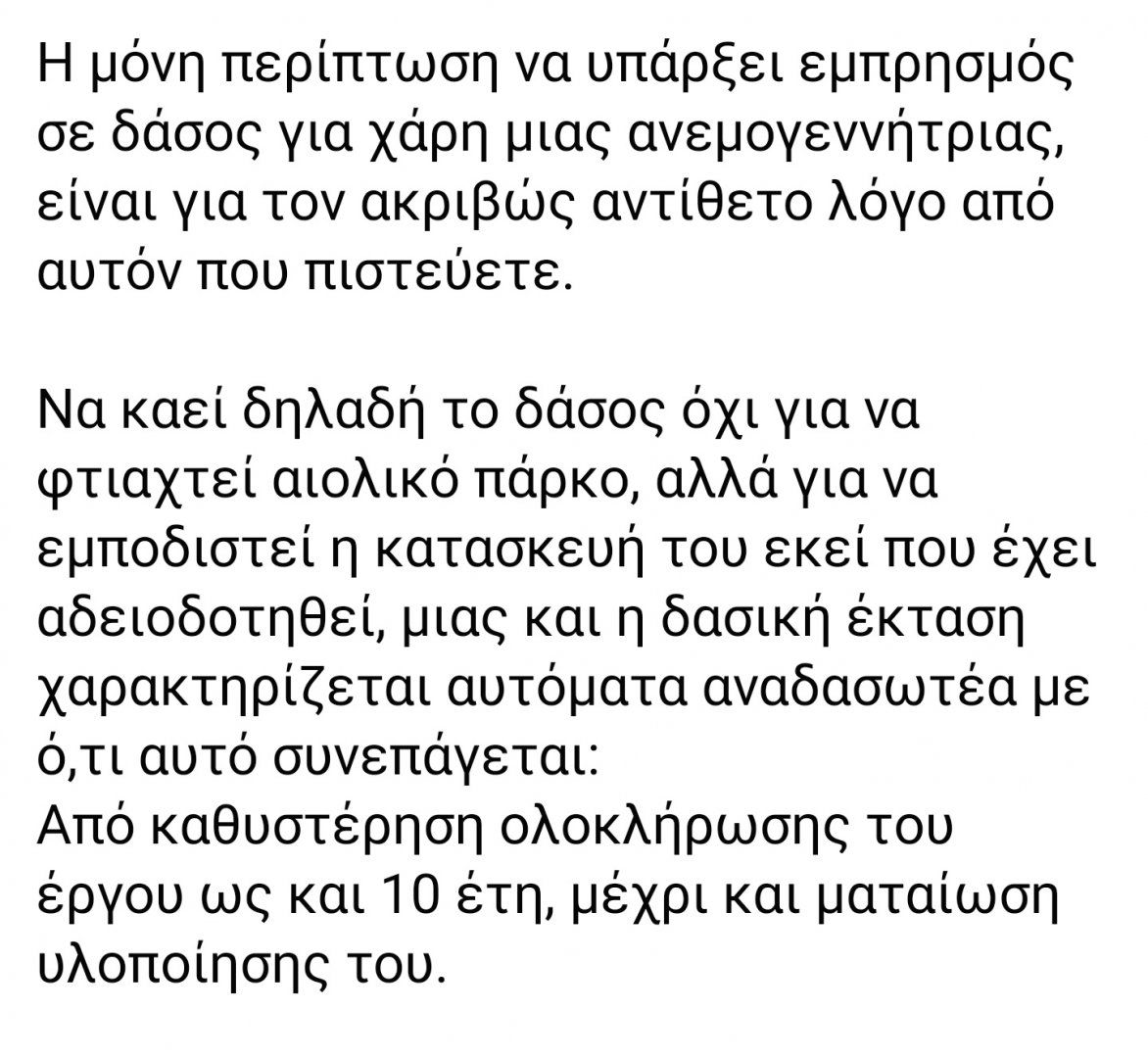 Θα τους κλασουν τα αρχίδια καθότι ο νόμος δεν προβλέπει να του ρωτήσουν για δασική έκταση, απλά τους ενημέρωσε.
