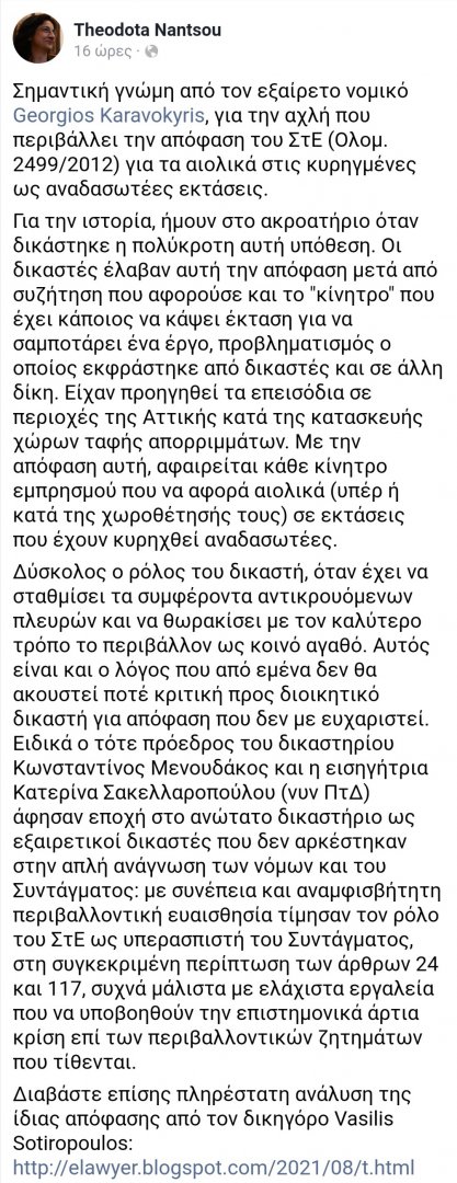 Δηλαδη το συμπερασμα ειναι οτι μπορουν να εγκατασταθουν ΑΠΕ στις αναδασωτεες εκτασεις.Πυρκαγιές και ανεμογεννήτριες.