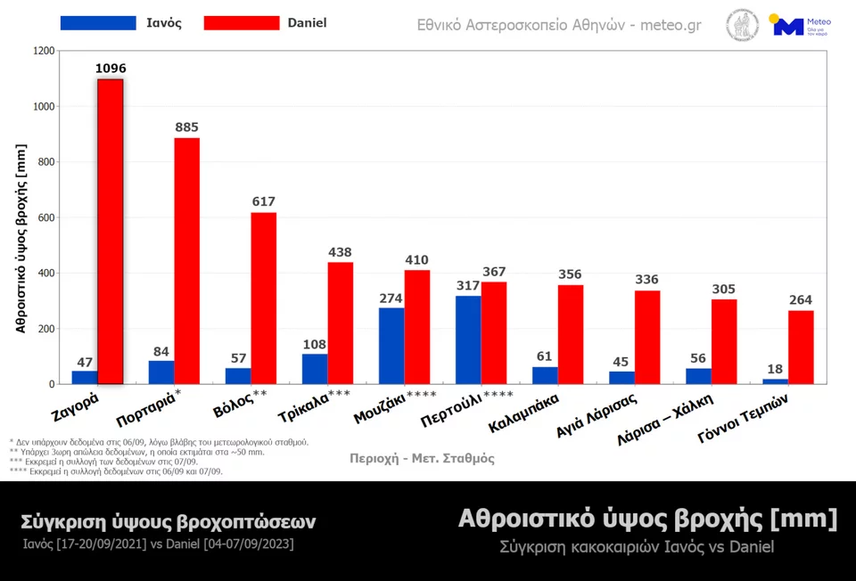 Δεν υπάρχουν βέβαια ποσοτικοποιημένα δεδομένα (συνολικό ύψος σε mm, ραγδαιότητα) αλλά το αποτέλεσμα (ανθρώπινες απώλειες, καταστροφές σε σπίτια και στη γεωργική παραγωγή, νεκρά ζώα κ.λπ.) είναι παρεμφερή και συγκρίσιμα. Αλλά βλέπεις η "κλιματική αλλαγή" είναι το πιο βολικό άλλοθι για να ξεπλύνει τις βαρύτατες κυβερνητικές ευθύνες (και αυτές της αυτοδιοίκησης που και αυτή όμως μπλε είναι σχεδόν σε όλη την Ελλάδα και σίγουρα στη Θεσσαλία): αν είχε γίνει ό,τι ήταν ανθρωπίνως δυνατό για να μετριαστεί το φαινόμενο με κατάλληλα έργα και υποδομές και αν η αντίδραση του κρατικού μηχανισμού ήταν έγκαιρη και καίρια (και όχι μετά από 2 και 3 μέρες απραξίας ενώ όλα τα μετεωρολογικά δεδομένα έπεσαν μέσα στις προβλέψεις τους και άρα τα γνώριζαν μέρες πριν), να λέγαμε μετά "ε τι να κάνουμε, έγινε ό,τι μπορούσε να γίνει και τα υπόλοιπα ήταν θέλημα θεού".