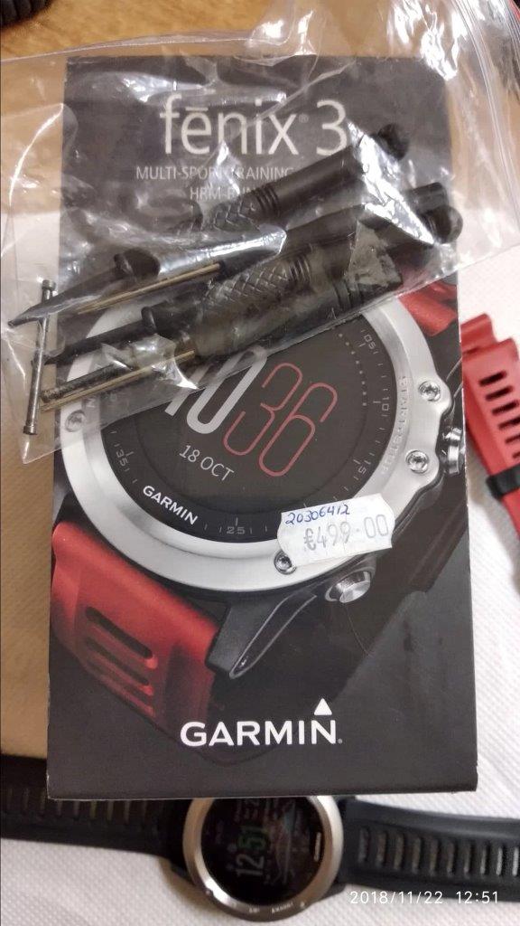 Με 2 λουράκια + τα (σχετικά) κατσαβίδια, φορτιστές, manual κτλπ. Χωρίς HR.