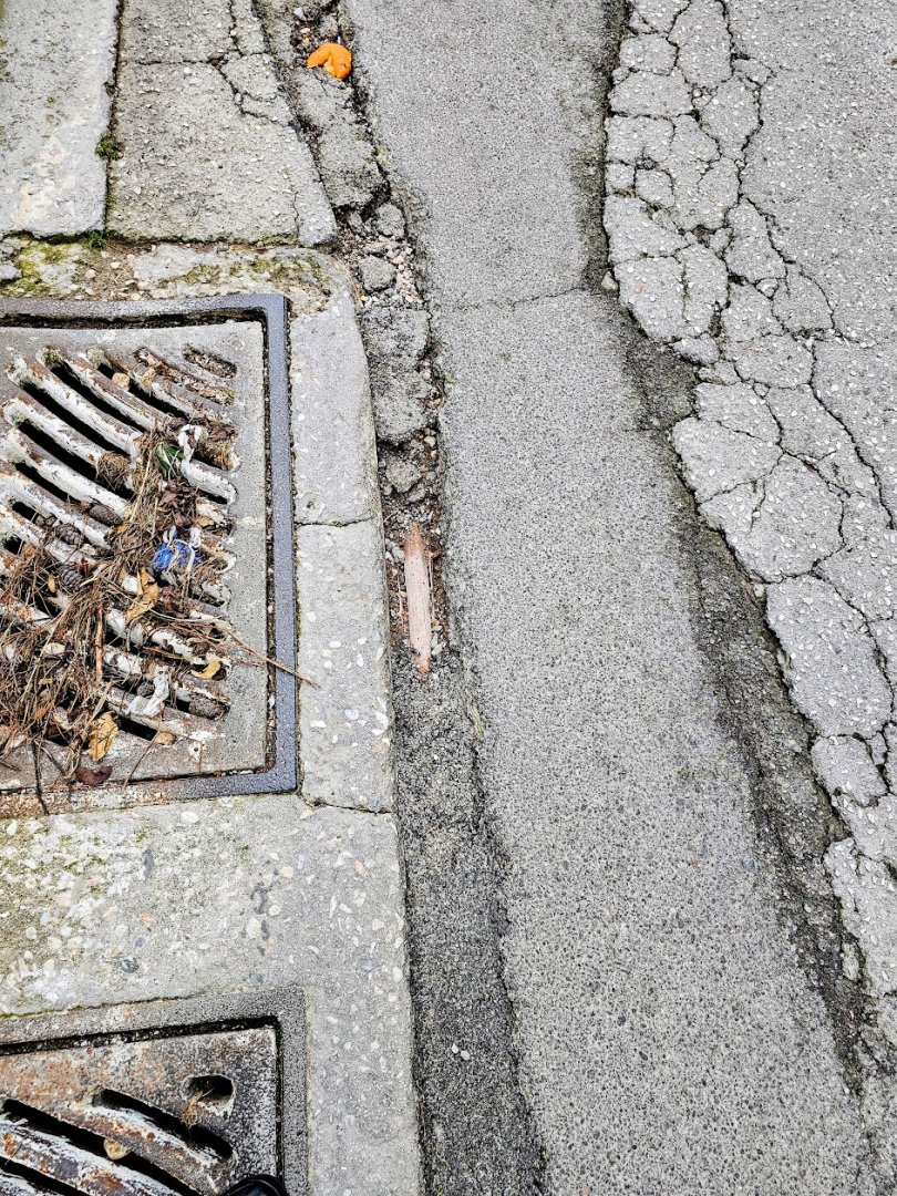Φωτογραφία από την κατάσταση του οδοστρώματος στην κάθετη (κεντρική) οδό της δικής μου. Ούτε ένας χρόνος δεν έχει περάσει από την τοποθέτηση και ήδη ο ελαστικός σωλήνας με τις οπτικές είναι εκτεθειμένος.