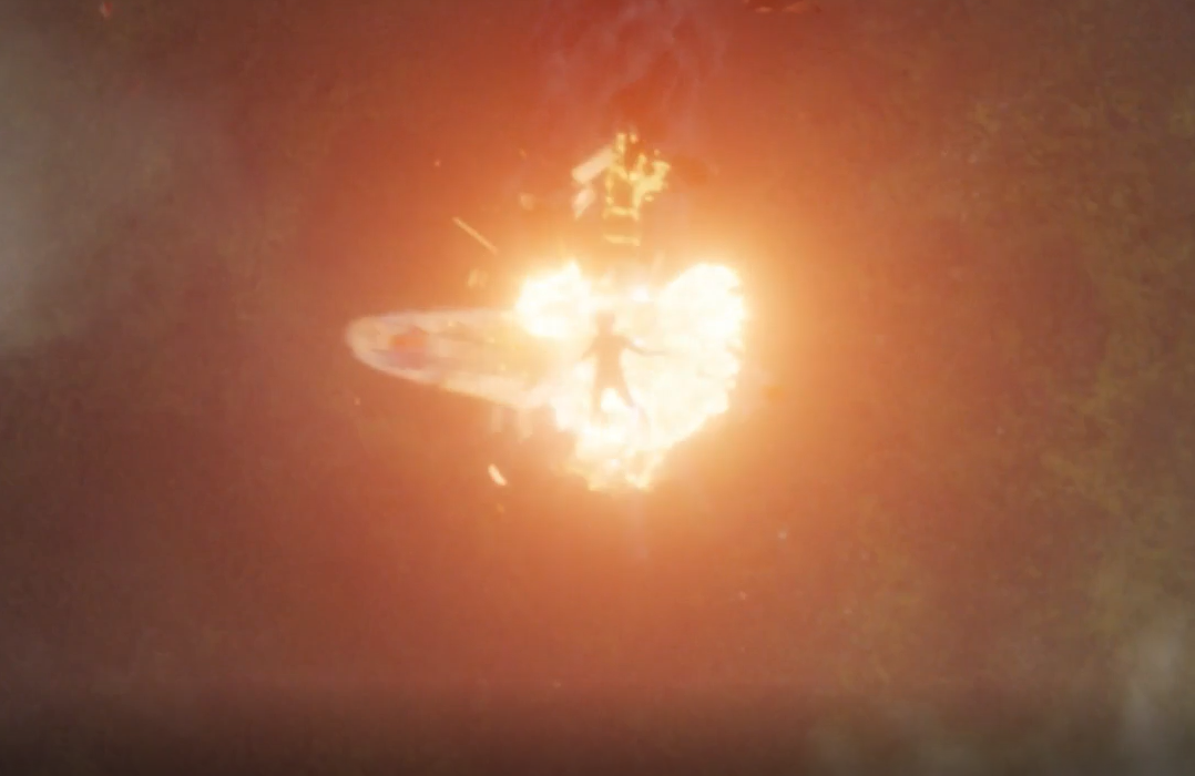 ............πέφτει στο κενό και από κάτω περνάει ένα φλεγόμενο αεροπλάνο πέφτει πάνω του και με το χτύπημα την επιστέφει πάλι στο αεροπλάνο...