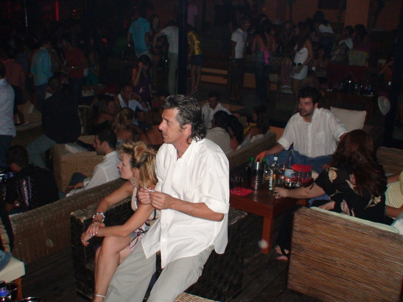 - "Αυτο εκεί... Που κάθετε ο τυπος με τα πράσινα που πινει το ποτό του; Διπλα"