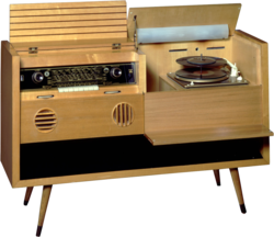 Μόλις θυμήθηκα το Philips Radiogram έπιπλο που αγοράστηκε πριν γεννηθώ στο οποίο έσπρωχνες το καπάκι και άνοιγε συγχρόνως το κάθετο αποκαλύπτοντας changer πικάπ 10 δίσκων (είχαν άπειρους 78, πολλούς 45 και λίγους 33), ράντιο και αποκάτω μπομπινόφωνο με recorder.