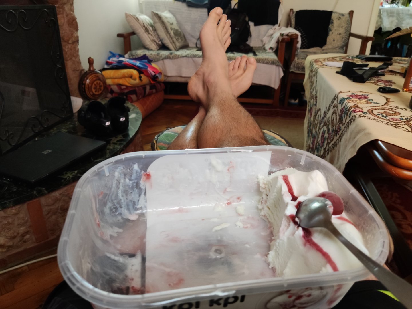 Έτσι ήμαν εψέ, κρατούσα όμως ένα κιλό παγωτό