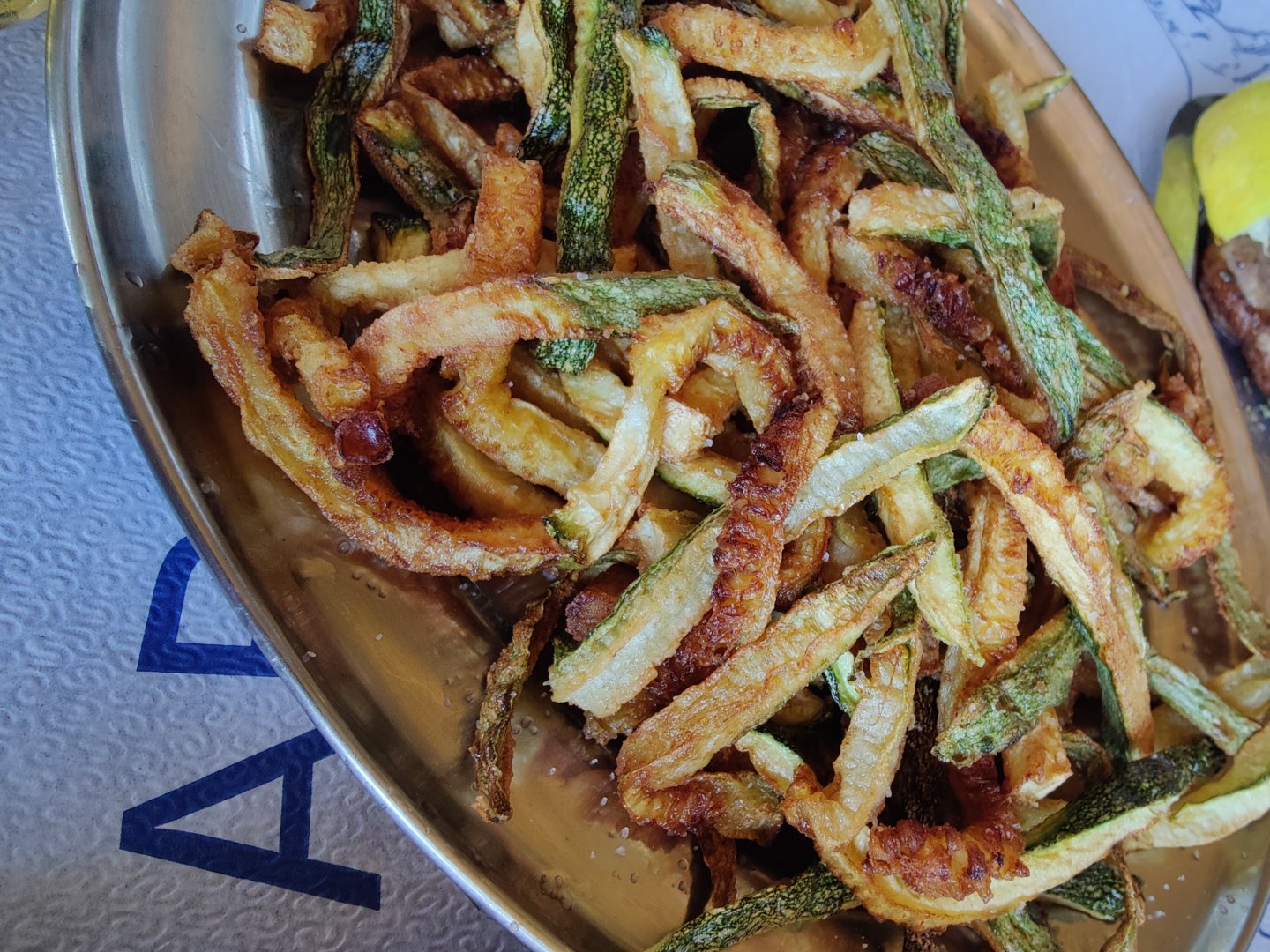 Χωριάτικη με τυρί της περιοχής. Κολοκυθάκια χωρίς κουρκούτι, γλύκισμα.