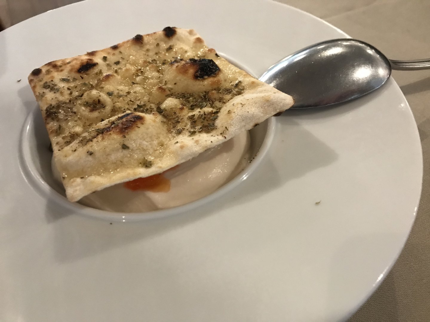 Στον κυνηγό στο Χορτιάτη, μια πολύ ενδιαφέρουσα σαλάτα αλοιφή, είναι η σαλάτα του κυνηγού, με ροκφόρ, πολύ ροκφόρ όμως, αυτή αριστερά.