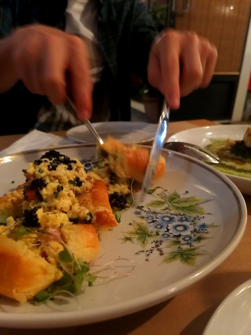 Στραπατσαδα με χέλι, μπριος και αυγά βασιλικης ρέγγας