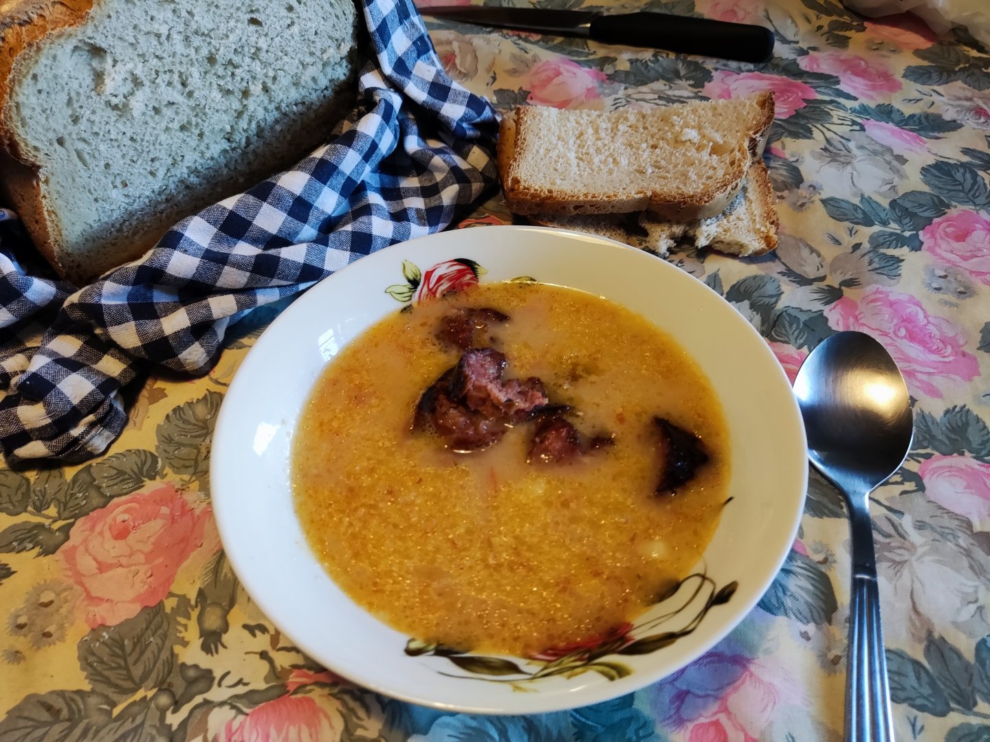 Πω, πω....στον ύπνο σου τα έβλεπες και τα έφαγες πρωί-πρωί?Πρωινός τραχανάς με λουκάνικο και μια ομελέτα με μπιφτέκι.