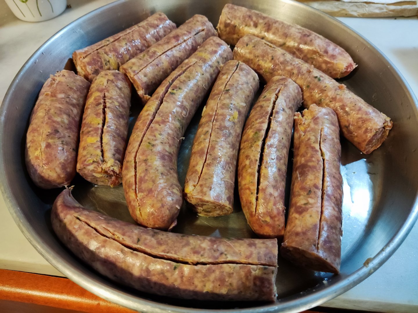 Τα λουκάνικα δεν τα χαράζουμε ούτε τα κόβουμε βρε άσχιετε . Στεγνώνουν.
