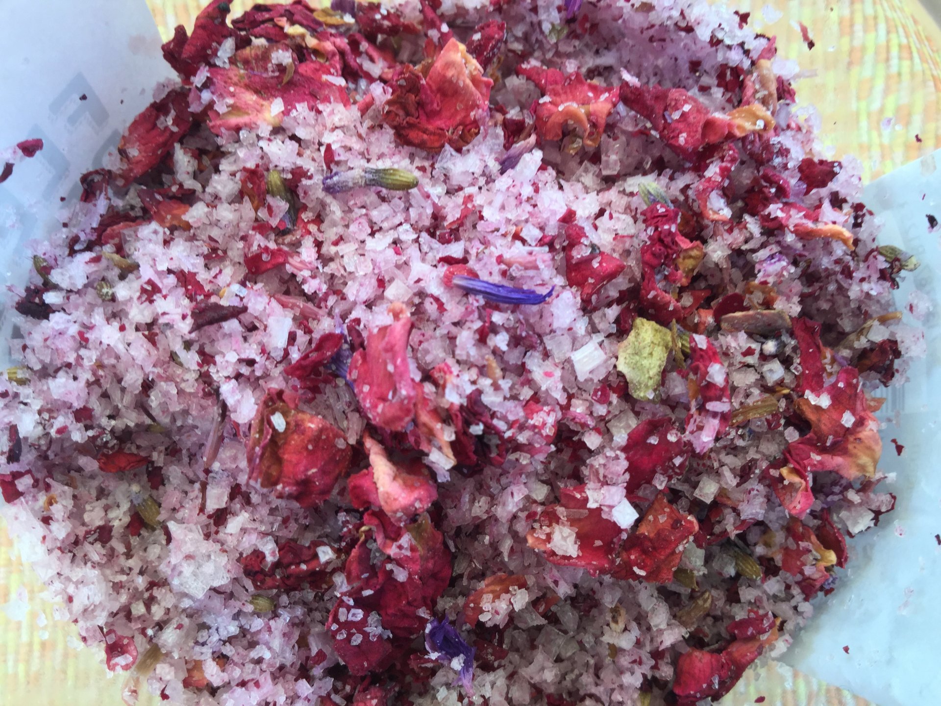 Αλάτι με άνθη λεβάντας και τριαντάφυλλου.