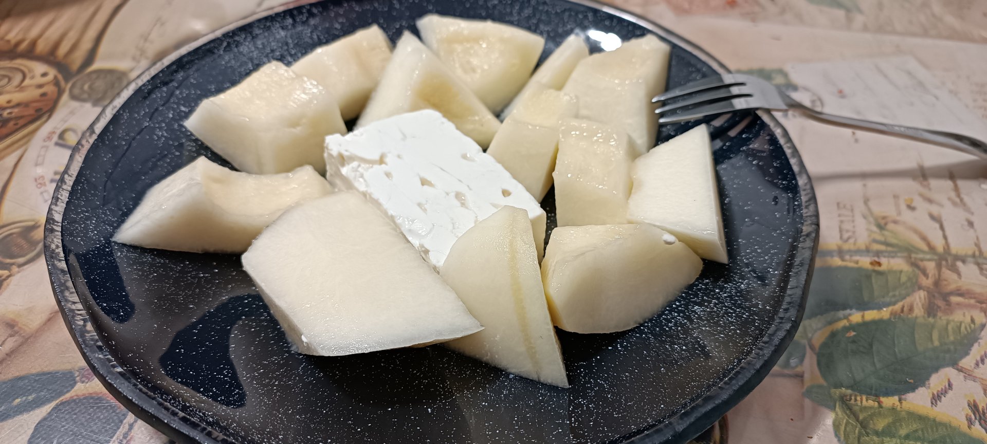 Με τέτοια ζέστη για βραδυνό ένα πιάτο με πεπόνι και τυρί φέτα είναι ένα ωραίο δροσιστικό γεύμα.