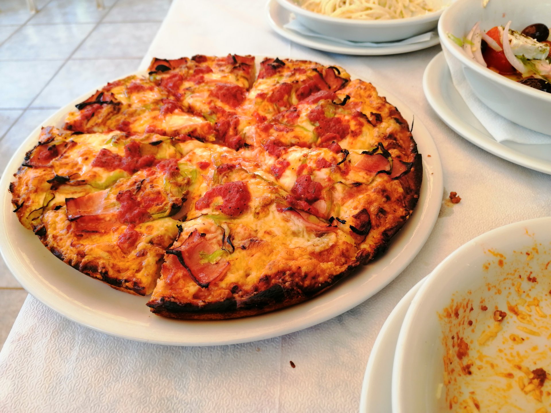 είναι πίτσα κρεατοφάγων ! κάτω από το πεπερόνι υπάρχει λίγο κότατζ τυρί για να μην παχαίνει τρομάρα μου;)