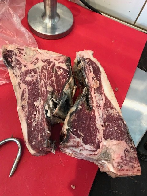 Γυρισα σπιτι με tbone παχους 6,5 cm , rib-eye σπεσιαλ κοπης , pikanha και μοσχαρισια μπιφτεκια απο κιμα ξηρας ωριμανσης