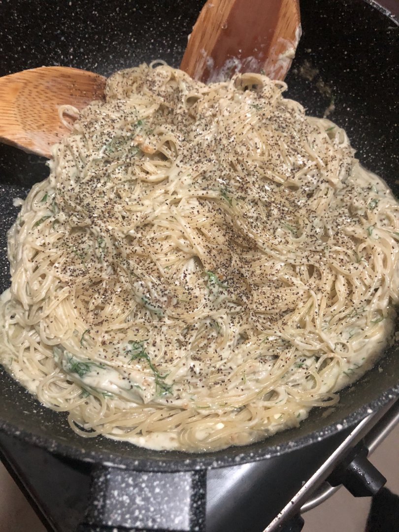 Μακαρόνια με κρέμα τυριών και σκόρδο.