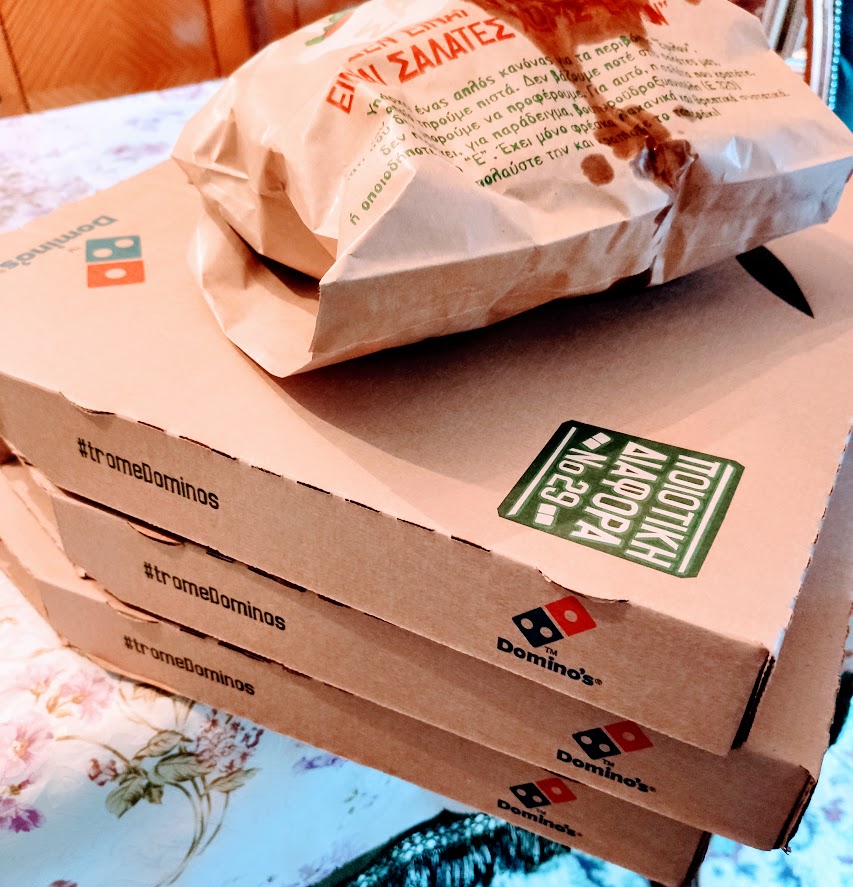 Αγαπημένη μου από Dominos η Φλαμπέ που έχει μπέϊκον ,κρέμα γάλακτος ,κρεμμύδια και μοτσαρέλα.