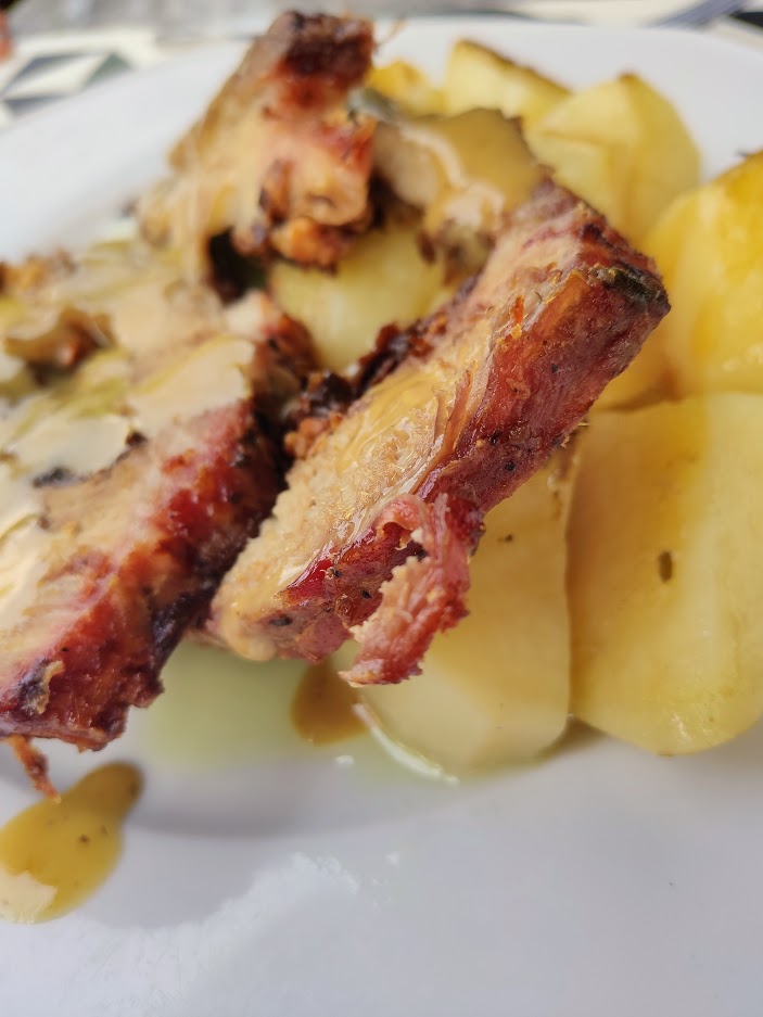 Χοιρινό με δαμάσκηνα και πατάτες φούρνου.
