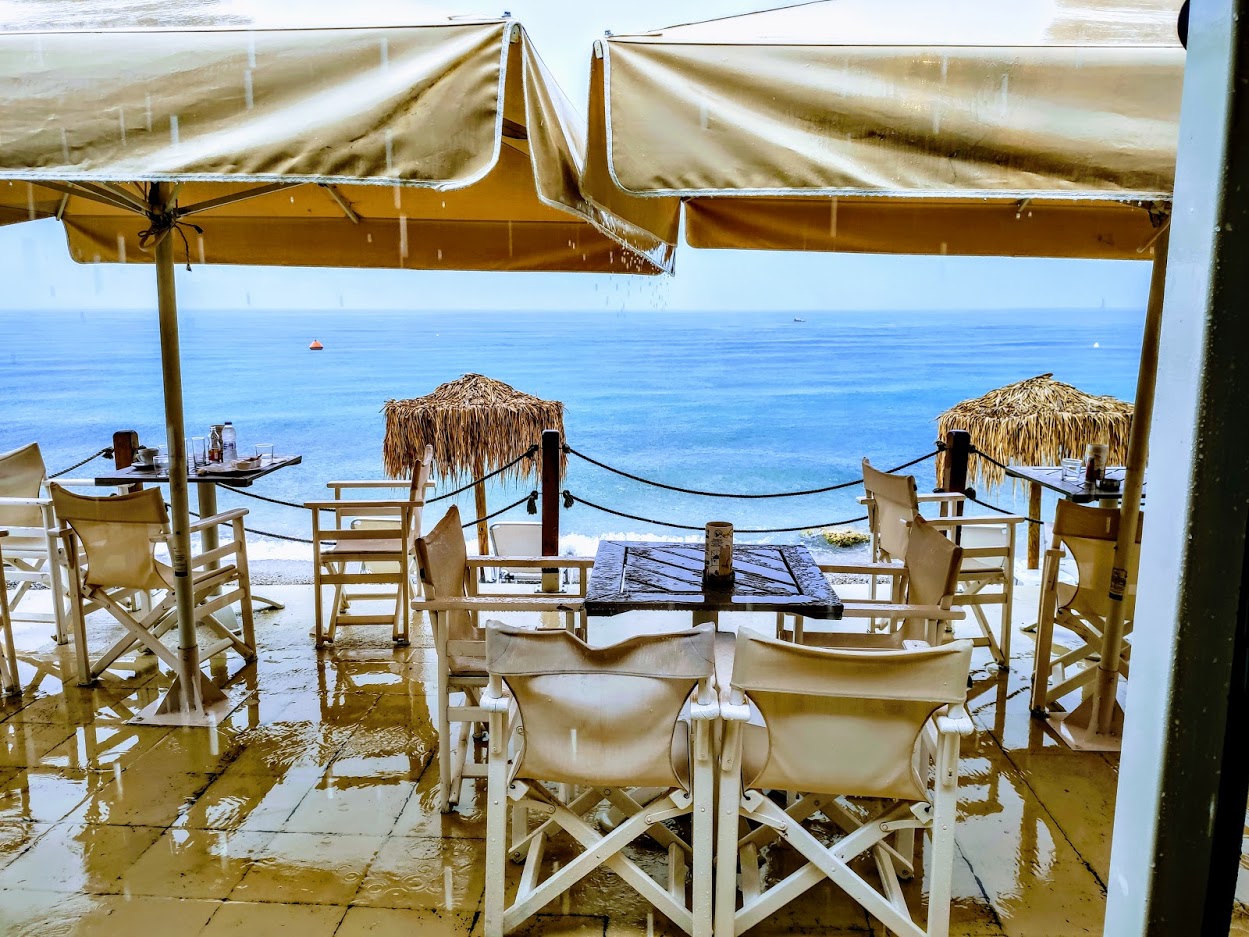 Ο καιρός μας τα χάλασε σήμερα, δε το βλέπω να στρώνει μέχρι το βράδυ, και μέσα δε καθόμαστε, μόνο έξω...