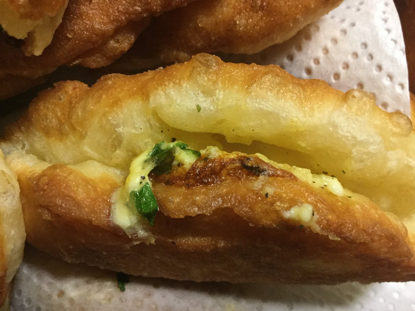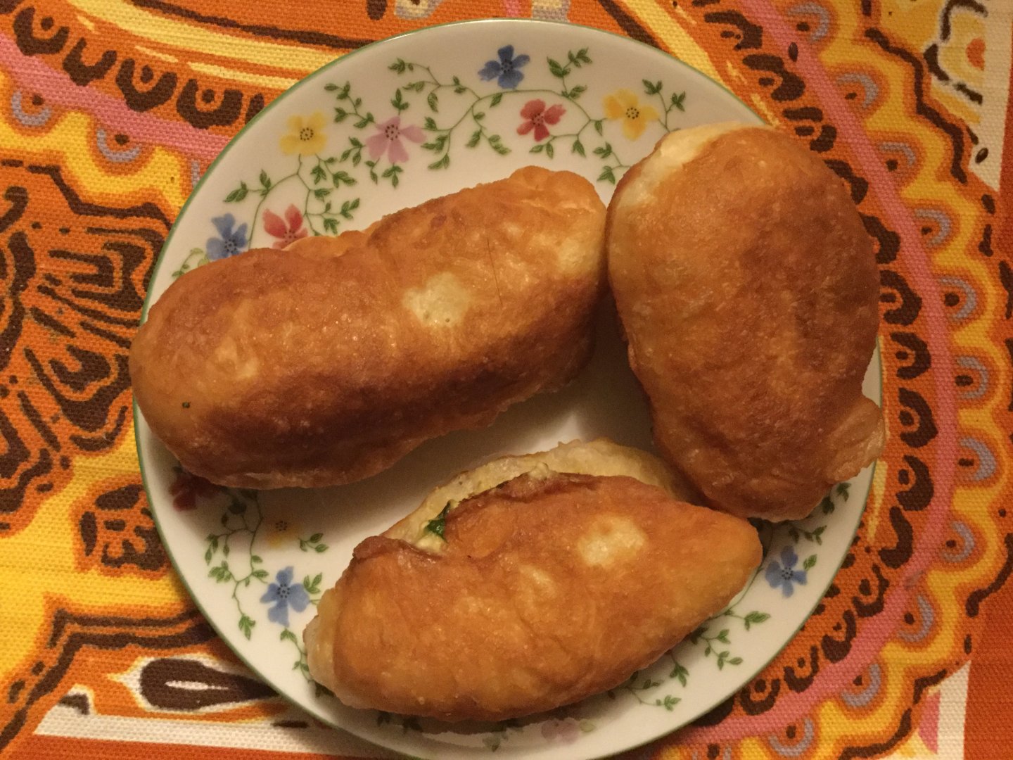 Πιροσκι пирожки́ με γέμιση πατάτας,τυριών και λουκάνικο φρανκφουρτης.