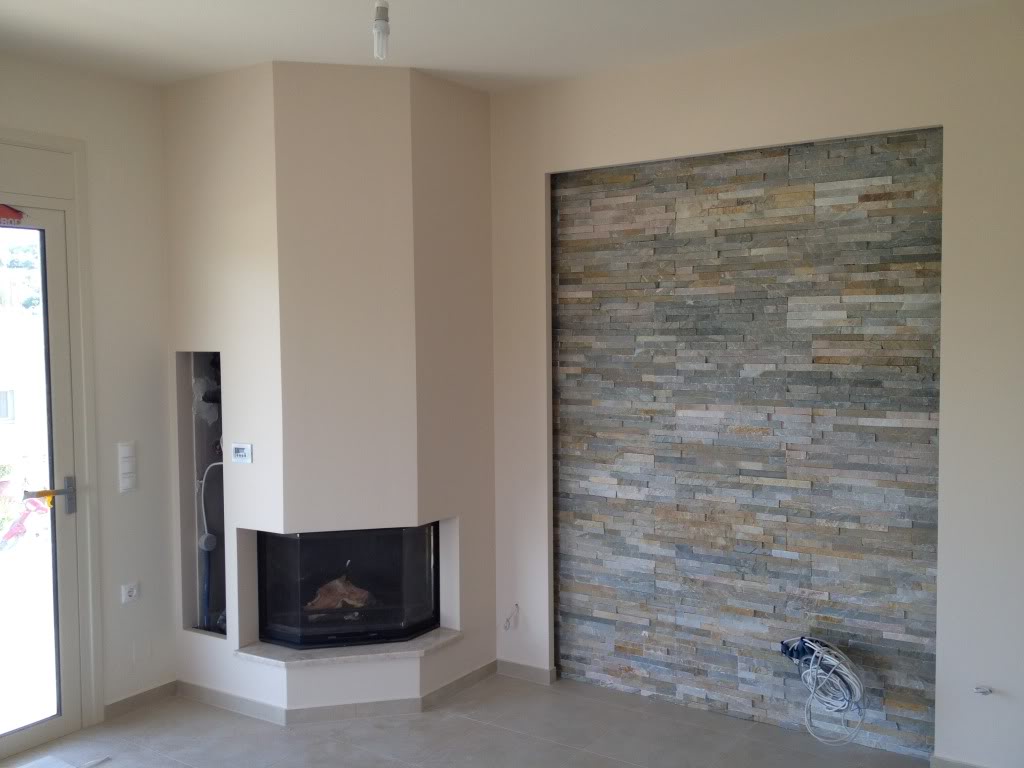 Μετά από πολύ σκέψη είπαμε να συνδυάσουμε στο σαλόνι και το τζάκι (γυναίκες βλέπεις….) βγήκε το σχέδιο και προχωρήσαμε.