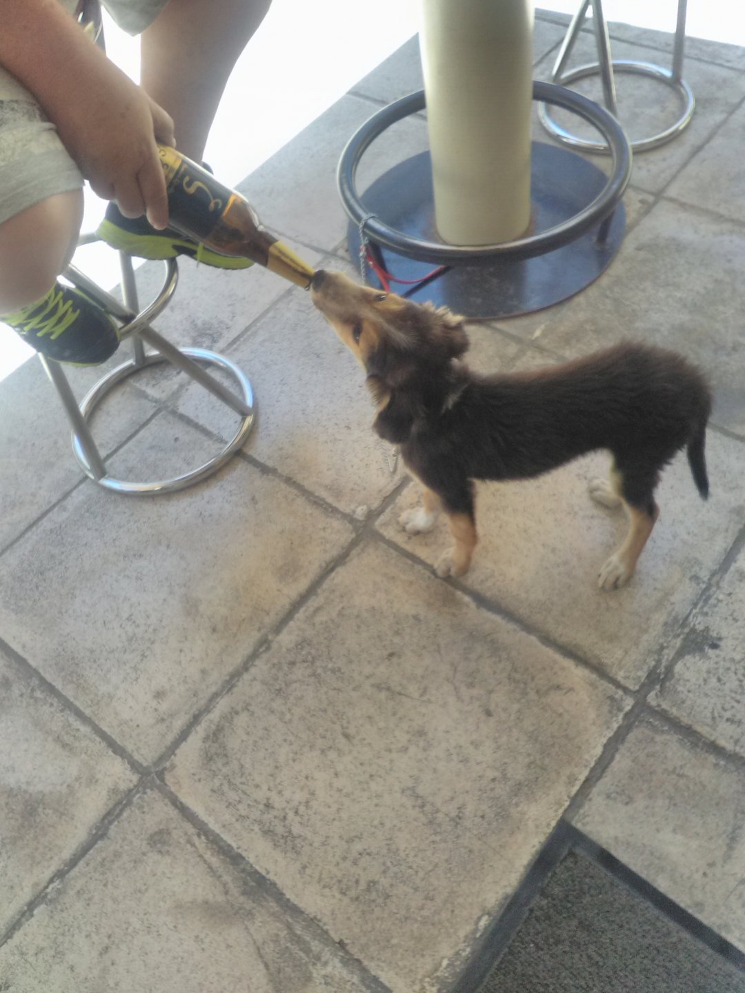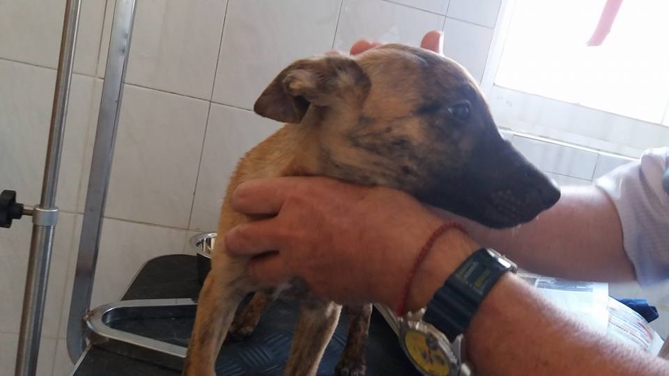 Το σκυλάκι είναι 2 μηνών και ζυγίζει 5 κιλά. Εξετάστηκε από κτηνίατρο, αποπαρασιτώθηκε και έκανε ακτινογραφίες, οι οποίες είναι καθαρές. Η παραμονή του όμως στο κτηνιατρείο λήγει το Σάββατο 29/07.
