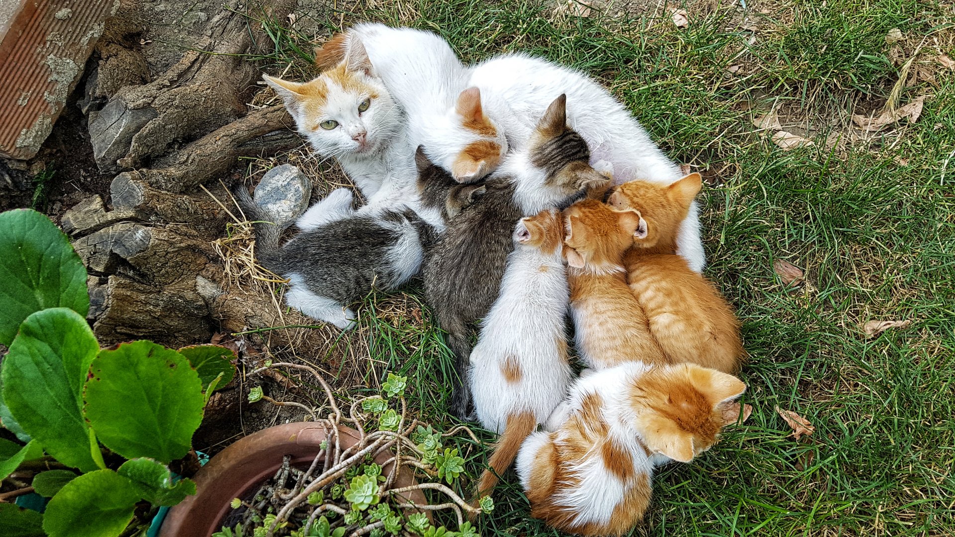 Όποια γάτα ξαπλώσει πρώτη κάτω τρέχουν και τα 7 για θηλασμό.