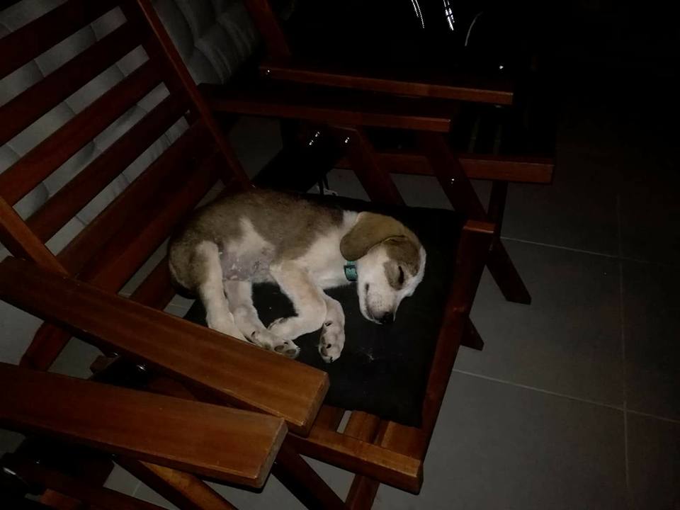 Μια φορά που τον είδα να περιφέρεται εκεί στα σκουπίδια, Ιούνιο μήνα με τις ζέστες και τον πότισα (είχα λεκανάκι με νερό απ΄έξω για τα αδέσποτα) τον τάϊσα, τον χάϊδεψα και από τότε είναι εκεί απ΄έξω και με περιμένει κουνώντας την ουρά του.