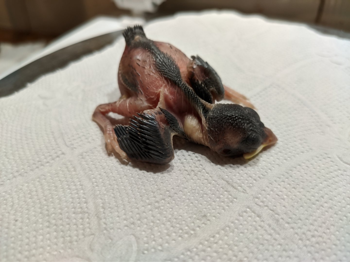 Το βρήκα κάτω στη αυλή σήμερα το πρωί, ήταν κρύο παγωμένο αλλά ζωντανό, το έφτιαξα αμέσως μια ζεστή φωλιά και σε 2 ώρες ζωντάνεψε, από εκείνη τη στιγμή τρώει και πίνει αβέρτα, αυτό τρώει πιο πολύ και από μένα...