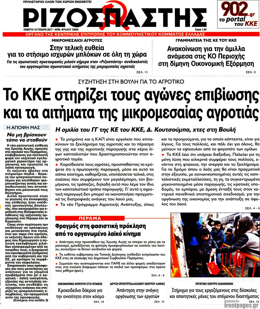 Το πρωτοσέλιδο της ημέρας