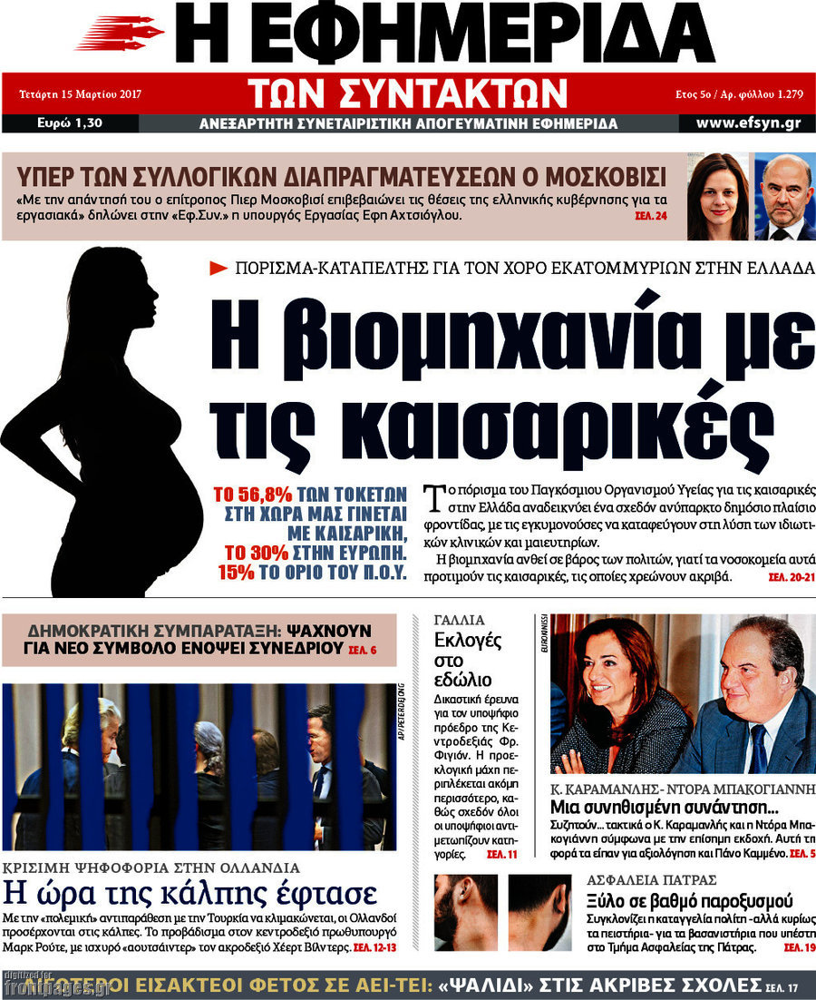 Από την άλλη σκέφτομαι ότι το σύστημα της καισαρικής, που σημαίνει ραντεβού, ταιριάζει καλύτερα στην κοινωνική μας συγκρότηση και στο σύστημα που έχουμε φτιάξει.