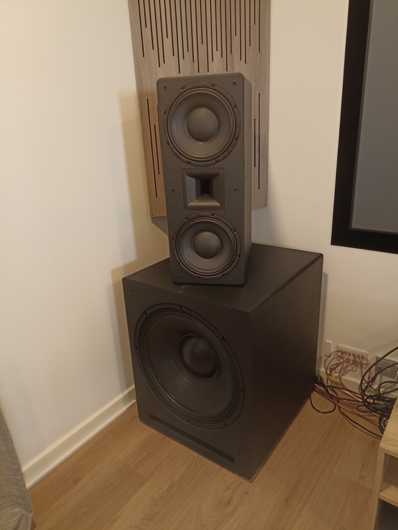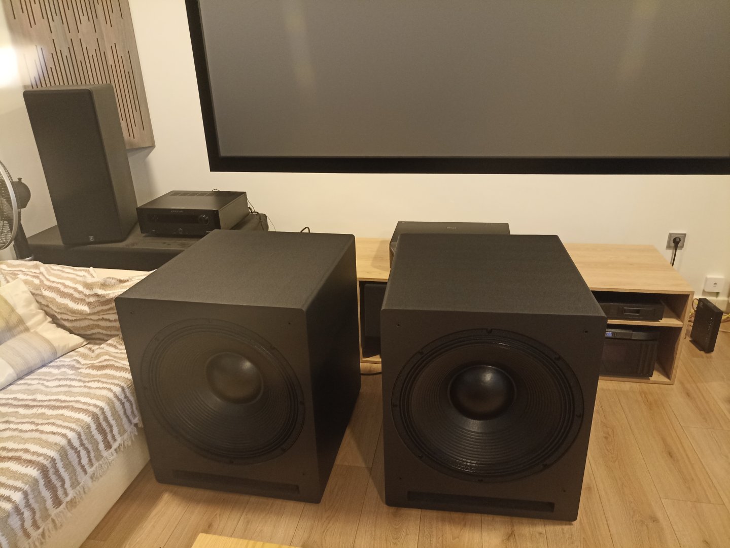 Πρόχειρες φωτό. Τα δύο 21 θα μπουν εκατέρωθεν της οθόνης, ως βάσεις για τα L, R και το διπλό 18 θα μεταφερθεί στην πίσω πλευρά του δωματίου.
