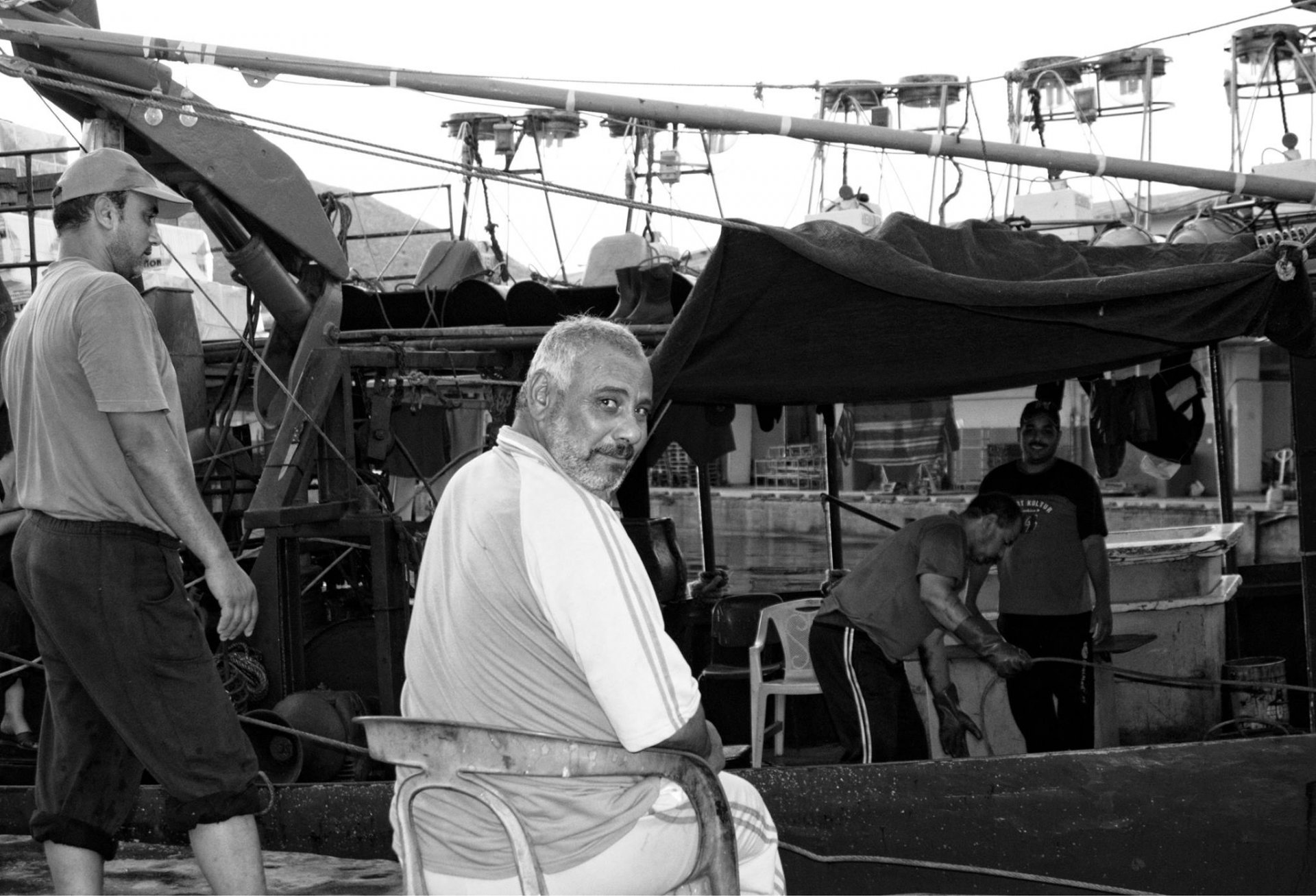 Προτροπή : Βάλε και μια δυο ακόμα αν σου έχουν ''κάτσει'', έτσι... για την καλύτερη περιγραφή του χώρου-στιγμής.Το σούρουπο έχει προβάλει. Δεν έχουν περάσει πολλές μέρες από τότε που αγόρασα την πρώτη μου dslr μηχανή, κι έψαχνα στιγμές να τις αποθανατίσω. Είμαι μετά την δουλειά, κουρασμένος αλλά πανευτυχής. Λίγο πριν το σπίτι -στην ιχθυόσκαλα, τα χρώματα και οι αντανακλάσεις στην θάλασσα με καθηλώνουν… Πλησιάζω με το αυτοκίνητο κι αρχίζω να τραβάω ότι βλέπω μπροστά μου: καραβάκια, γερανούς, γλαροπούλια, δίχτυα και στοιβαγμένα τελάρα.... Κατεβαίνω απ’ το αμάξι κι αφήνω τη μηχανή να κρέμεται στο στήθος. Λίγα μέτρα παραπέρα μια ομάδα ψαράδων ετοιμάζεται για το ταξίδι τους. Μια φωνή, σχεδόν αρχοντική, με καλεί να πλησιάσω « εi, καρντάση, για κόπιασε κατά ‘δω! » Κι εκεί, άρχισαν όλα. Μιλήσαμε με τα μάτια˙ δεν χρειάστηκα πολύ ώρα για να τους πείσω να "ποζάρουν" για μένα. Μυστικά καλά κρυμμένα κάτω απ’ το πετσί αυτών των ανθρώπων, επιβλητικότητα και συνάμα απροσμέτρητη εγκαρδιότητα, είναι λίγα από τα χαρακτηριστηκά που κυρίευσαν την ψυχή μου. Το δάκτυλα μεθυσμένα από την αναπάντεχη τούτη χαρά, πίεζαν τα πλήκτρα της μηχανής κι επαναλάμβαναν χωρίς περιττούς υπολογισμούς και στησίματα… Η μόνη αρχή που κλωθογύριζε στο μυαλό μου ήταν ο σεβασμός: moφτης, πρόσεχε μη τους πληγώσεις!