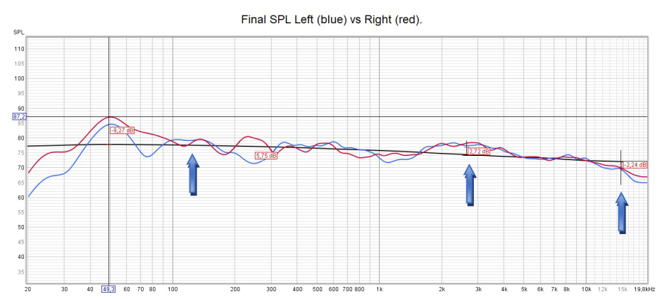 Η γενική κλίση στις αποκρίσεις συχνότητας είναι αποδεκτή...Δεν συλλαμβάνω το σκεπτικό διόρθωσης στην αρχική κόκκινη με τρόπο που μετέτρεψε σε έντονη υποχώρηση την τόνωση στη ζώνη 200-300 Hz,ενώ στις πρώτες οκτάβες αφαίρεσε τόση ενέργεια σε ολόκληρη τη ζώνη όχι μόνο χωρίς να εξουδετερώσει την αρχική τόνωση με επίκεντρο τα 50 Hz ,αλλά δημιουργώντας επιπλέον αχρείαστη υποχώρηση στη ζώνη 60-90 Hz...