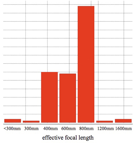 Σύμφωνα με "δημοσκόπηση" ανάμεσα σε bird-photographers, βγήκε ανάλογα με τον αριθμό φωτογραφιών σε κάθε εστιακό μήκος, το παρακάτω διάγραμμα: