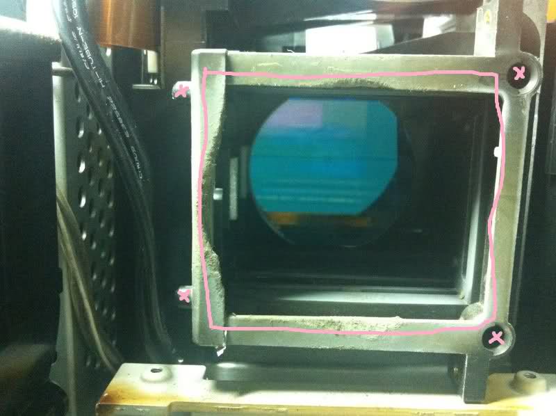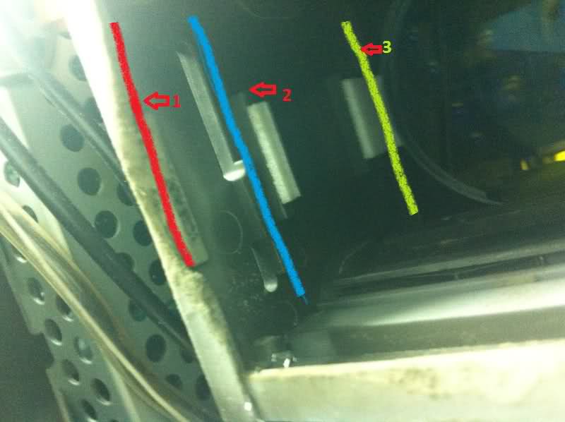 Στην κόκκινη γραμμή μπαίνει το πρώτο φίλτρο ,στην μπλε το δεύτερο και στην κίτρινη τα τελευταία δύο. Στο ροζ πλαίσιο στηρίζεται και βιδώνει μια πλαστική βάση ,αρκετά μεγάλη σε όγκο,αφού μέσα της πάει και κουμπώνει η λάμπα.για να καταλαβω...το 1ο φιλτρο τοποθετειται στην εσοχη 1(κοκκινη γραμμη) και τα υπολοιπα 2 στις αντιστοιχες μπλε και πρασινη γραμμες?..μεχρι ποιο σημειο θα μπορουσες θεωρητικα να αφαιρεσης-κοψεις το πλαστικο?