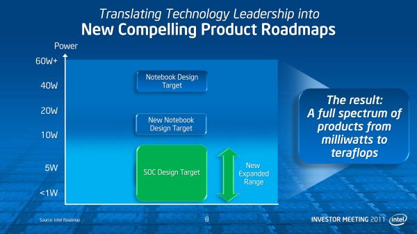 ... ενώ η απάντηση της Intel δεν είναι μακριά, πριν καλά - καλά το Ivy Bridge φθάσει στις προθήκες των καταστημάτων. Το slide είναι χαρακτηριστικό της στατηγικής της τα επόμενα χρόνια. Για τα υπόλοιπα, δείτε το άρθρο. Παρακολουθώντας τη σχετική αρθρογραφία τα τελευταία 25-30 χρόνια, νιώθω πάντα πως αυτό που αγοράζω είναι ήδη παλιό.