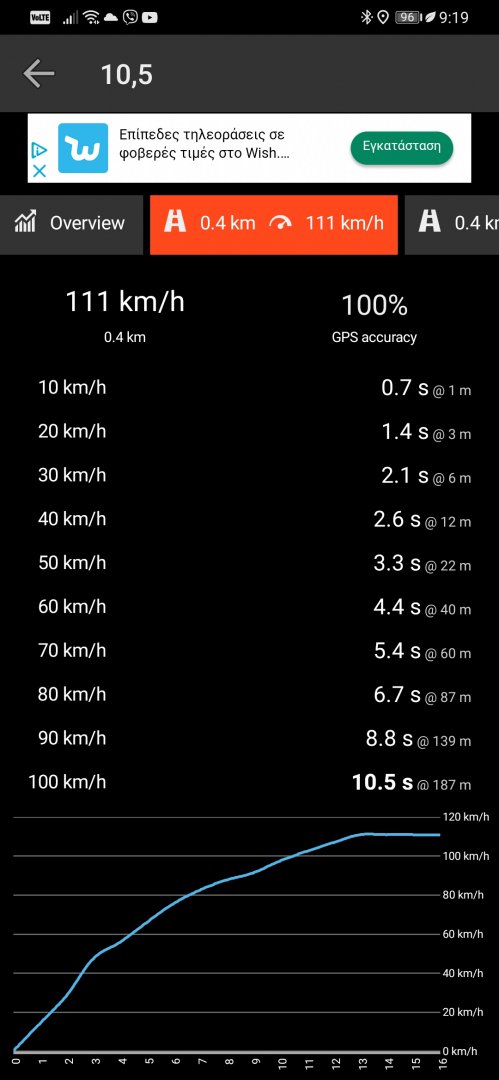 Υπάρχουν πολλές android εφαρμογές (Google play) για μέτρηση 0-100χλμ/ω με ακρίβεια (GPS).