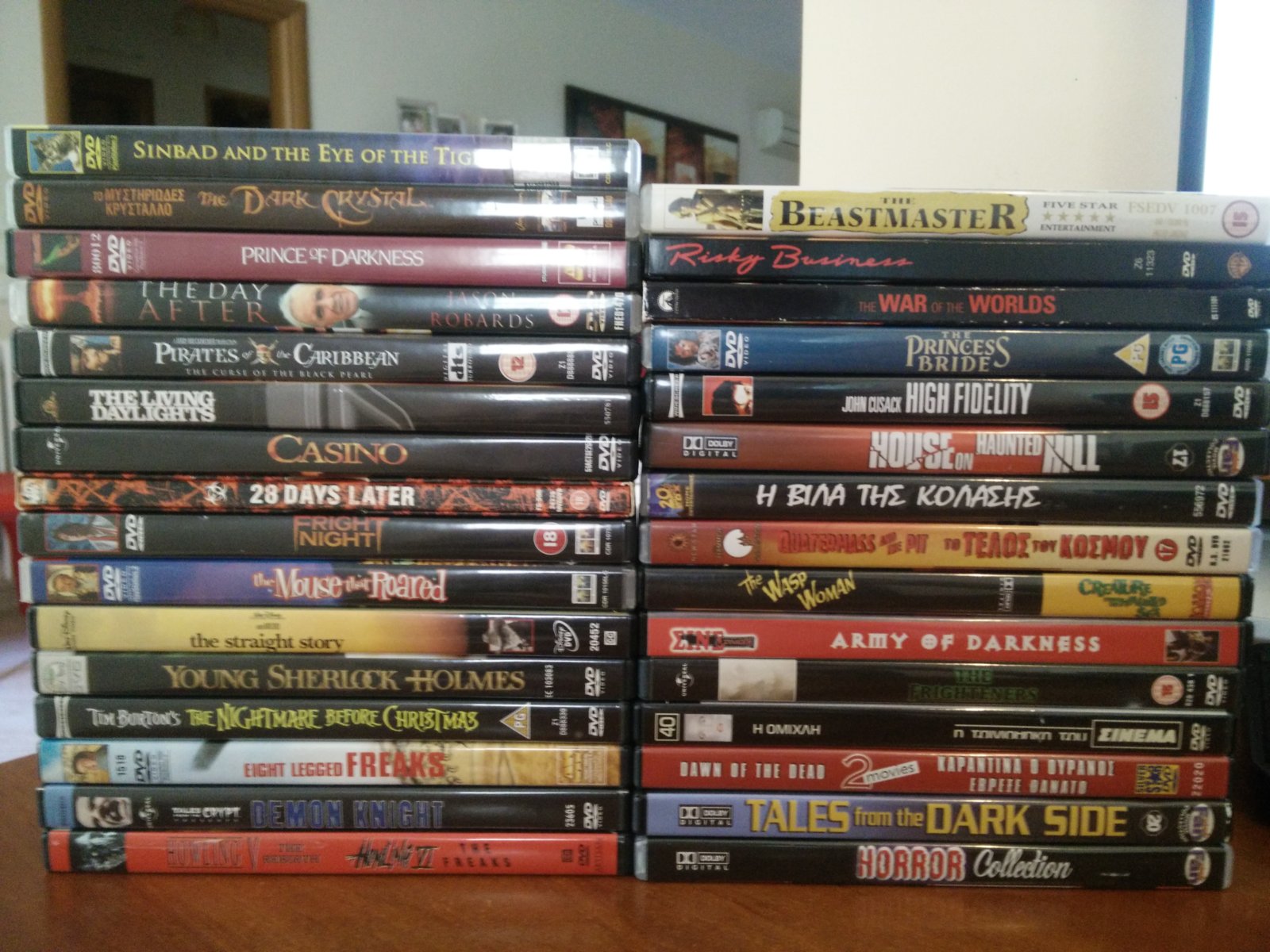 Πωλουνται οι τιτλοι που βλεπετε στη φωτο. 31 DVD στην τιμη των 50 ΕΥΡΩ (περιπου 1,6 ευρω το τεμαχιο δηλαδη). Δεν πωλουνται χωριστα, μονο ως πακετο. Προτιμω συναλλαγες απο κοντα. Οι τιτλοι φαινονται ξεκαθαρα στις φωτο.