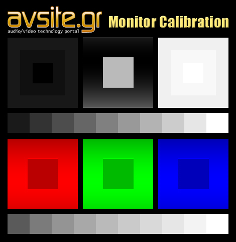 Η ρύθμιση του monitor με το μάτι, απαιτεί μία ή περισσότερες ειδικά σχεδιασμένες εικόνες αναφοράς, γνωστών και ως patterns. Αν και το διαδίκτυο είναι γεμάτο από αυτές, εγώ σχεδίασα μία ειδικά για το AVSite.
