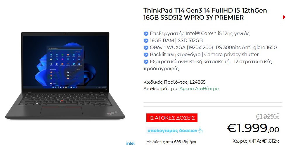 O Thinkpad T14 Gen3 είναι κατασκευασμένος για τις πιο απαιτητικές εργασίες. Εξοπλισμένος με τελευταιας γενιάς επεξεργαστές και πολύ ισχυρά χαρακτηριστικά θα είναι ο ιδανικός σας σύμμαχος σε όποια εργασία θέλετε να πραγματοποιήσετε. Η εξαιρετική του οθόνη με πολύ μικρά περιθώρια καιwww.e-lenovo.gr