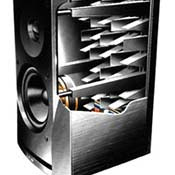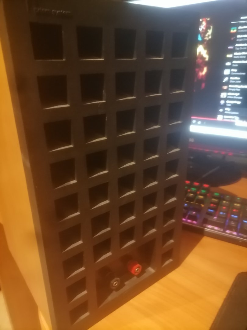 Η εσωτερική επιφάνεια του πίσω διαφράγματος είναι μια πολύπλοκη διαμόρφωση από τυχαία παρατεταγμένες κωνικές πυραμίδες, που λέγεται ότι μοιάζουν με τα τοιχώματα ενός ανηχοϊκού θαλάμου. Η B&W αποκαλεί αυτό το "Prism" και ισχυρίζεται ότι εξαλείφει τα στάσιμα κύματα μέσα στο ντουλάπι και ενισχύει τόσο τον ορισμό των μπάσων όσο και την "ταχύτητα". Από έξω, η κηρήθρα από ορθογώνια αυτού του πάνελ μοιάζει με σίδερο βάφλας.