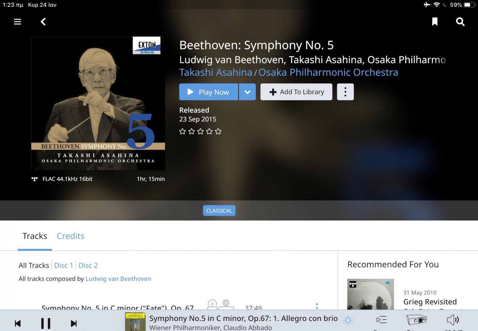 Το cd δεν αναγνωρίστηκε αμέσως από το Roon, χρειάστηκε η βοήθεια του MusicBrainz Picard.