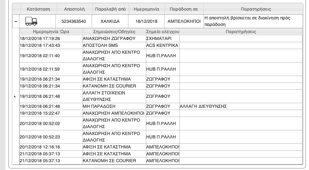 Η Δευτέρα πάλι είναι Προχριστούγεννα, οπότε για μεταΤετάρτη το βλέπω...Καλησπέρα από ΕΛΤΑ περιμένοντας δέμα από εξωτερικό και βλέποντας από τον αριθμό ότι είναι στο τοπικό κατάστημα παίρνω τηλέφωνο να ρωτήσω πότε θα γίνει παράδοση . (όλο αυτό Πέμπτη 12.00 π.μ) και η κορυφαία απάντηση πολε έλαβα: "Μιας και είναι προΠαρασκευή θα παραλάβετε λογικά από Δευτέρα" Προπαρασκευή παρακαλώ πας ή δεν πας από εκεί;