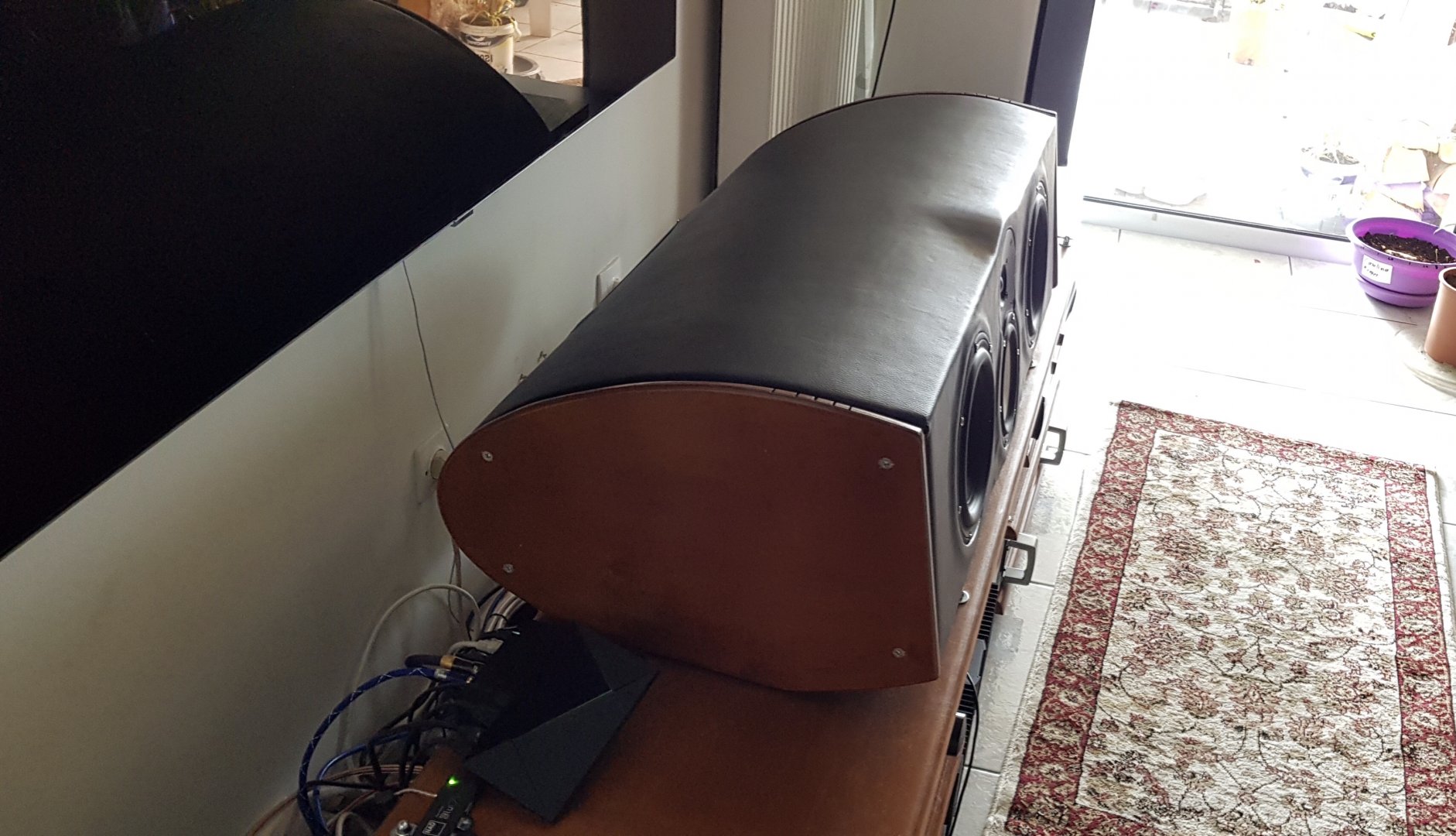 Η μόνη ιδιαίτερη πρόσθεση στο κάτω κάτω σημείο μεταξύ της βάσης και του ηχειου, έχει περαστεί ειδικό αντικρουστικο υλικό μαζί με ειδικό υλικό καθαρά για τις δονήσεις. Βλέπε DYNAMAT. Ενδιάμεσα σε συτα έχω βάλει Copropen. Έκαστο υλικό έχει διαφορετικες ιδιότητες, που μελετημένα όλα μαζί μειώνουν σε πολύ μεγάλο βαθμό τους κραδασμούς που μεταφέρονται στο πατωμα. Ειδικά αφού είναι και με cross στους 80 κυκλους, ακόμα λιγότεροι κραδασμοί περνάνε κάτω. Η δουλειά εκ του θετικότατου αποτελέσματος δείχνει ότι η μελέτη απέδωσε. Θέμα χρόνου να βάλω και τις φωτογραφίες και από αυτό το στάδιο.