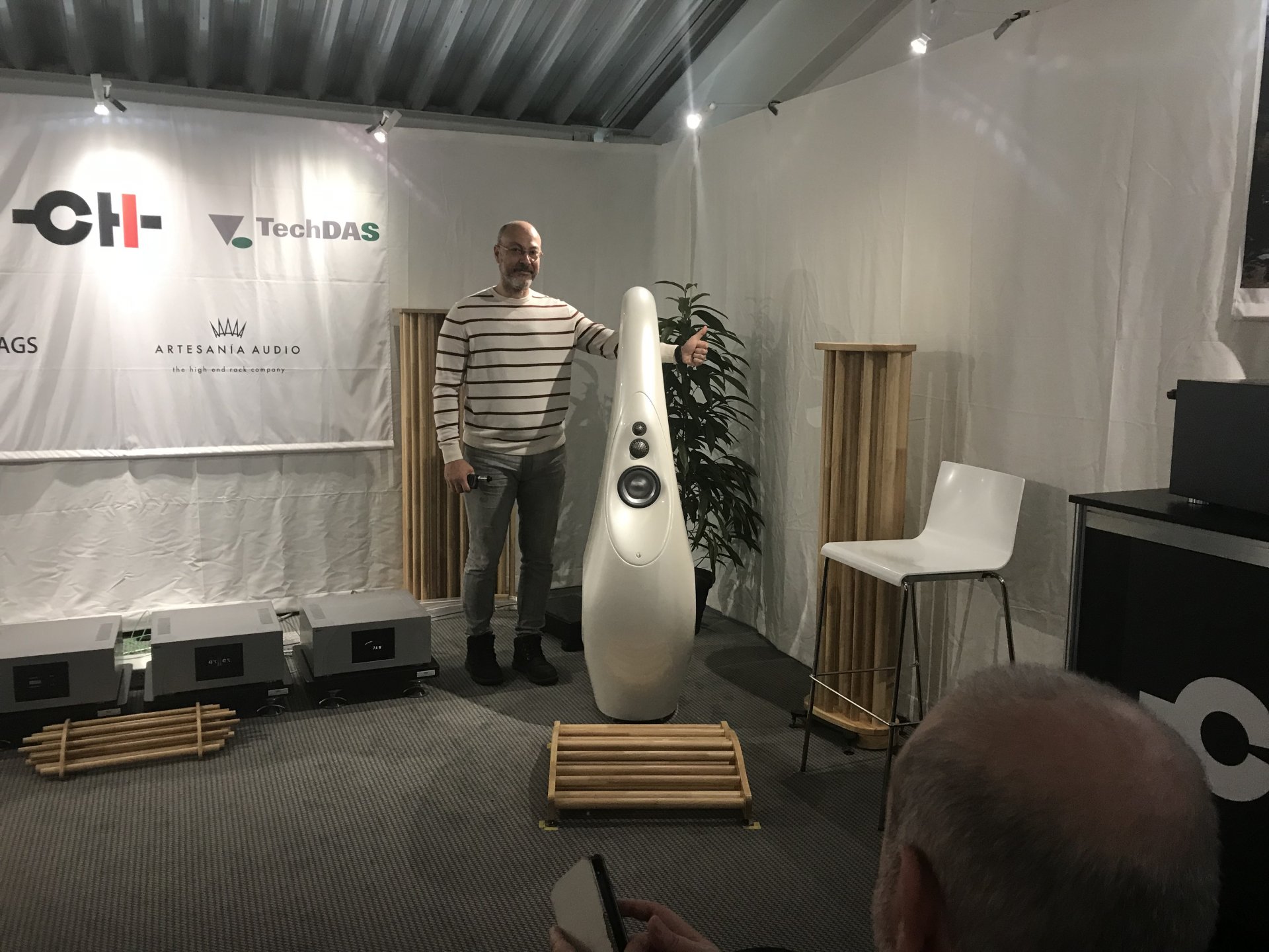 Στα μεγάλα φοκάλ μετά χαράς μου έβαλε Μόμπι το παλικάρι εκεί. Κι έδωσε και γκάζι, στα όρια του εφικτού με τους κανόνες της έκθεσης. Άριστο ηχείο, εξαιρετικό. Αλλά 100 χιλιάδες ευρώ, δε τους τα έδινα, όσο άριστο κι αν είναι ένα ζευγάρι ηχεία...