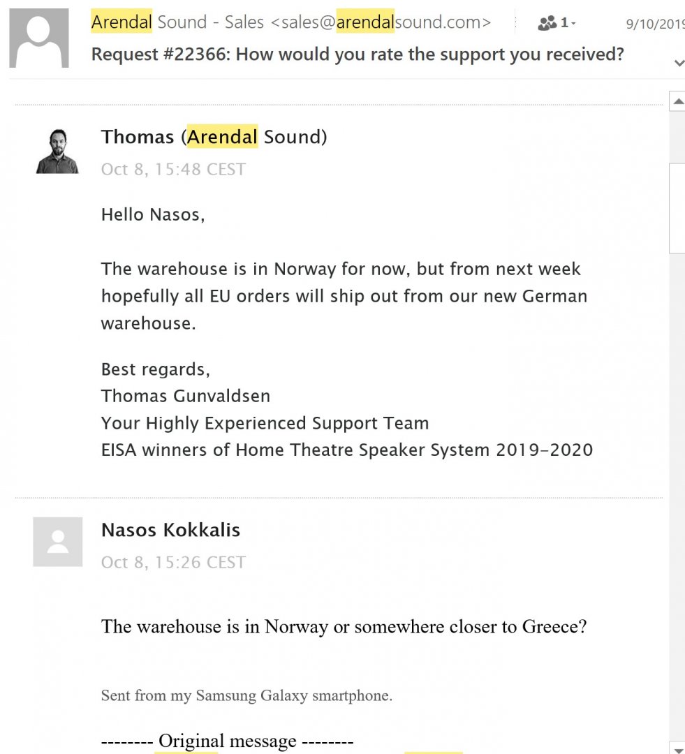 όταν τα πείρα δεν λειτουργούσε, έχω το tracking από Νορβηγία ξεκίνησε. και το pb2000 από lsound πριν 5 χρόνια δεν είχα θέμα.Η arendal εχει αποθηκη στην Γερμανια και τα στελνει απο εκει.