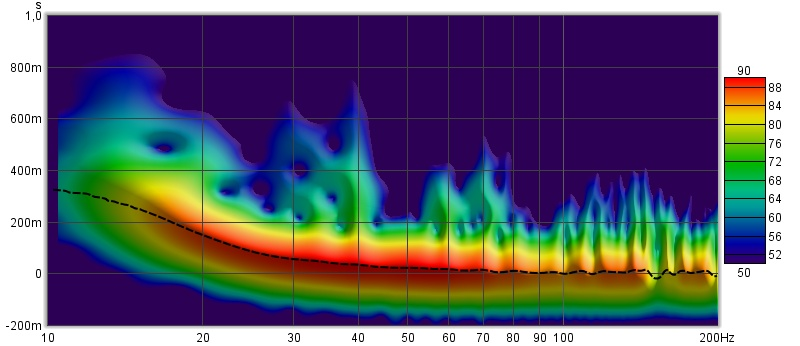 Αυτή η ομαλά ανοδική πορεία που ξεφεύγει όμως αρκετά μέχρι το κάτω όριο απόκρισης αποτελεί εστία προβληματισμού για τα ρυθμισμένα delays στην εκπομπή των sub σε συνάρτηση πάντα με τη συχνότητα κροσαρίσματος.Αν η τελευταία έχει οριστεί στα 80 Hz,τότε μια οκτάβα παρακάτω στα 40 η απόκλιση ξεκινά να γίνεται σοβαρή.Αν λ.χ. το κρος είναι ορισμένο στα 50 Hz,τότε επανεξετάζονται τα delays ,αλλά θέλει πρωτόκολλο δοκιμαστικών λήψεων ...