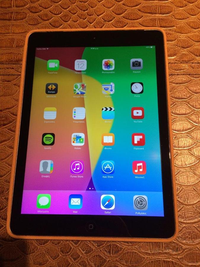 Πωλείται iPad Air 16GB WiFi + Cellular σε κατάσταση σφραγισμένου, σαν καινούριο στο κουτί του με όλα τα παρελκόμενα και μια θήκη αυθεντική Apple Smart Case σε χρώμα καφέ (ταμπά) αξίας 85€!