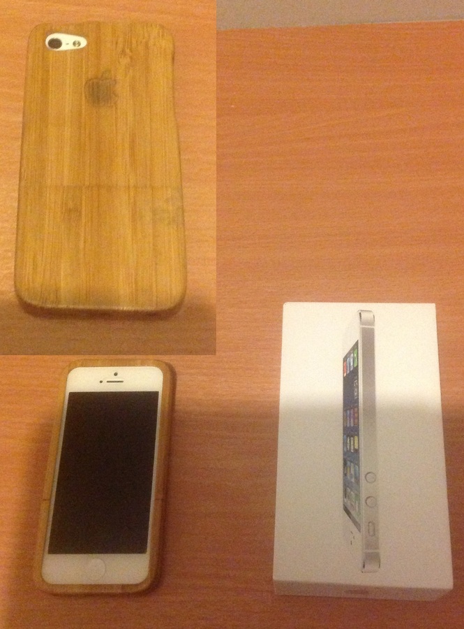 -Ξύλινη θήκη (αξίας 40 ευρώ), με σκαλιστό λογότυπο της Apple στο πίσω μέρος και